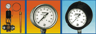 Instruments de mesure Trerice, incluant manomètres, thermomètres industriels et robinets thermostatiques.